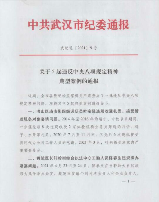 市紀(jì)委關(guān)于5起違反中央八項(xiàng)規(guī)定精神典型案例的通報(bào)