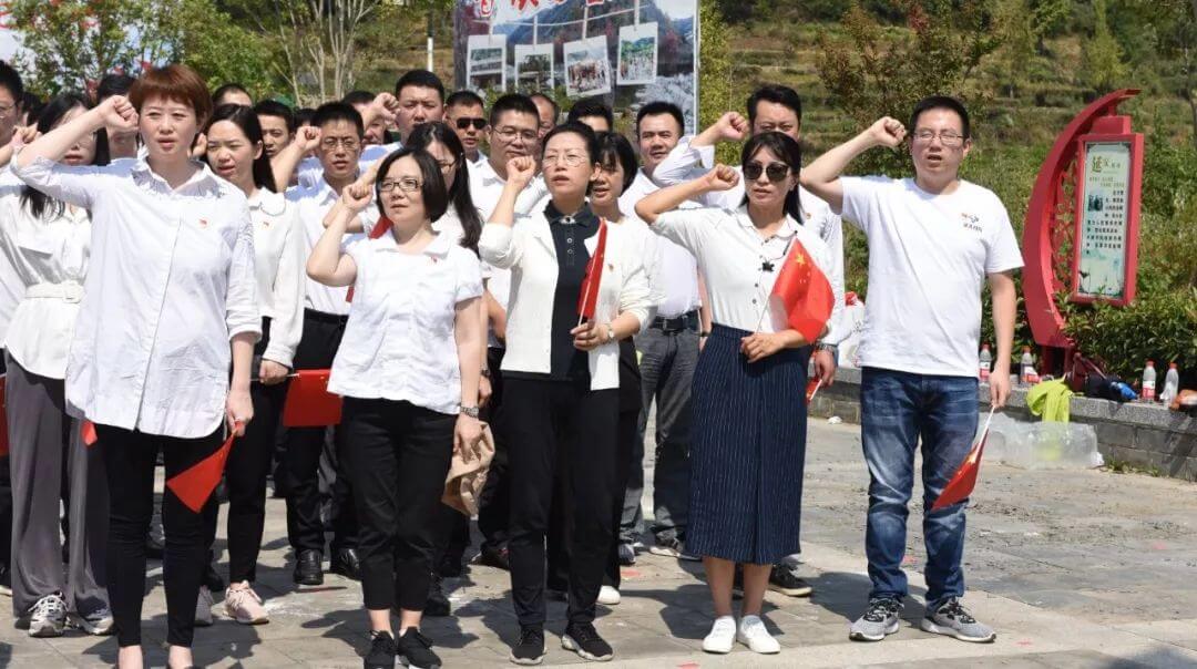 姚家山位于武漢市黃陂區(qū)蔡店街,群山起伏,地勢險要,是抗日戰(zhàn)爭的紅色堡壘,這里曾留下了李先念、陳少敏等老一輩無產(chǎn)階級革命家、革命先驅(qū)光輝的足跡。在抗戰(zhàn)門樓廣場,懷著對革命先輩的崇敬之情,集團公司舉行了莊嚴(yán)隆重的升旗儀式,全體黨員干部職工奏唱國歌,并在人民英雄紀(jì)念堂內(nèi)重溫入黨誓詞。